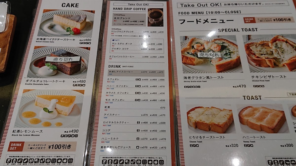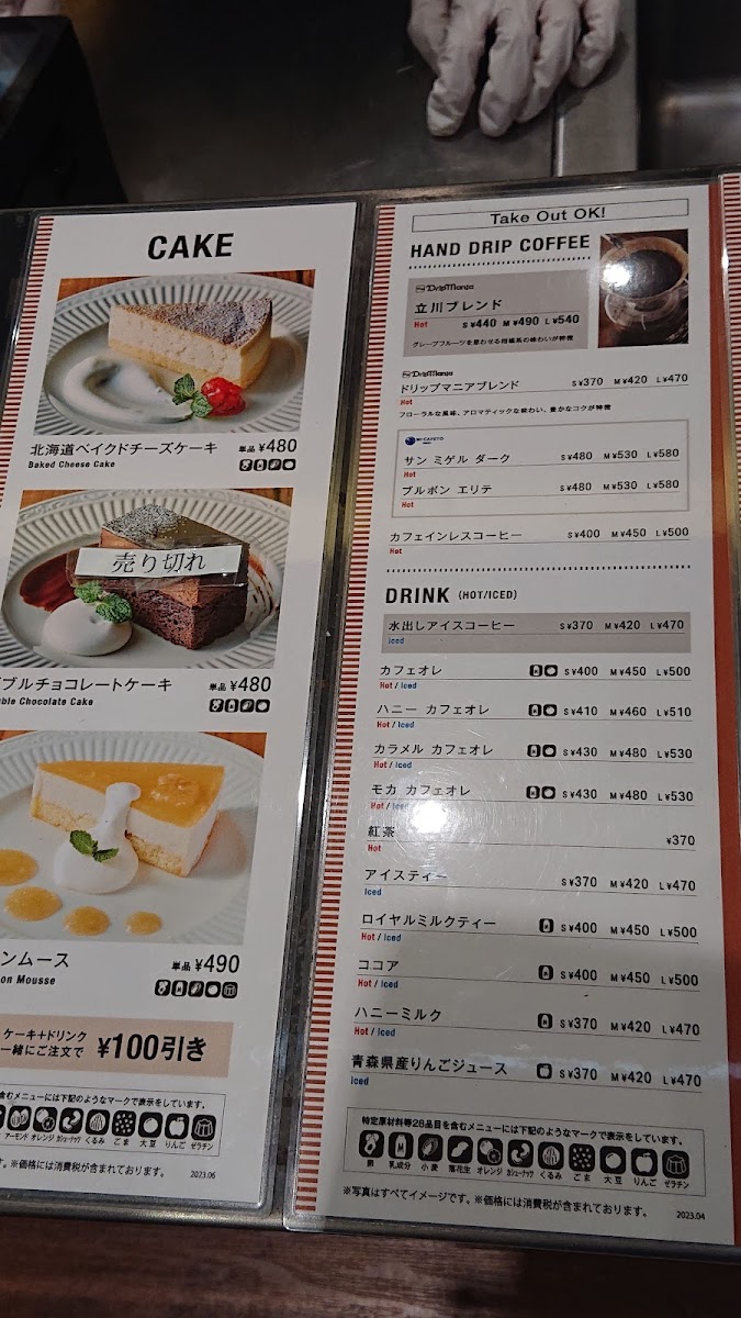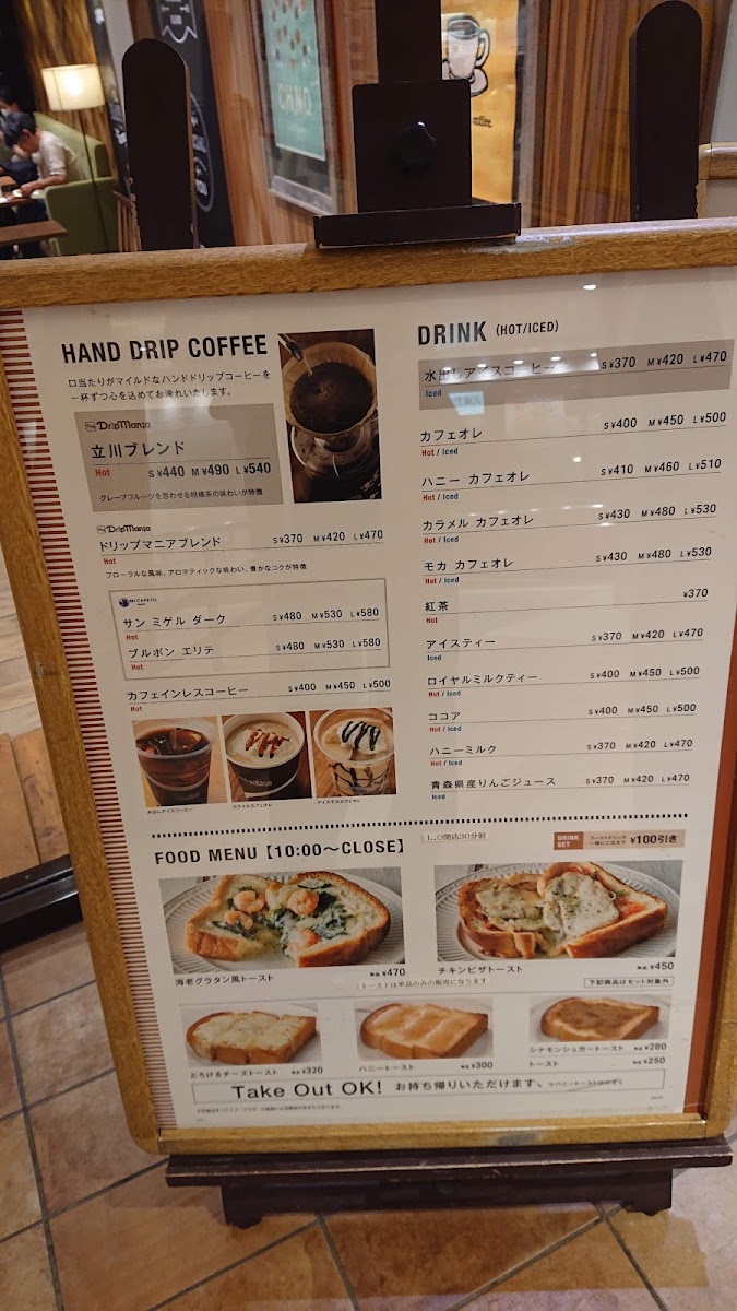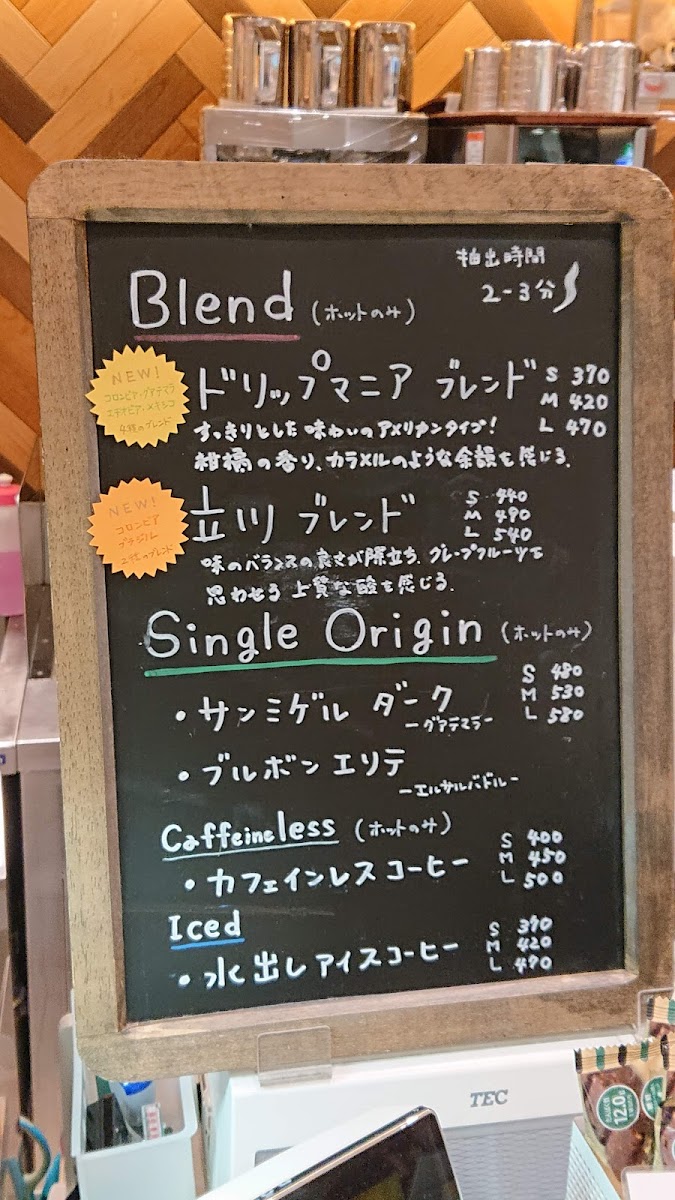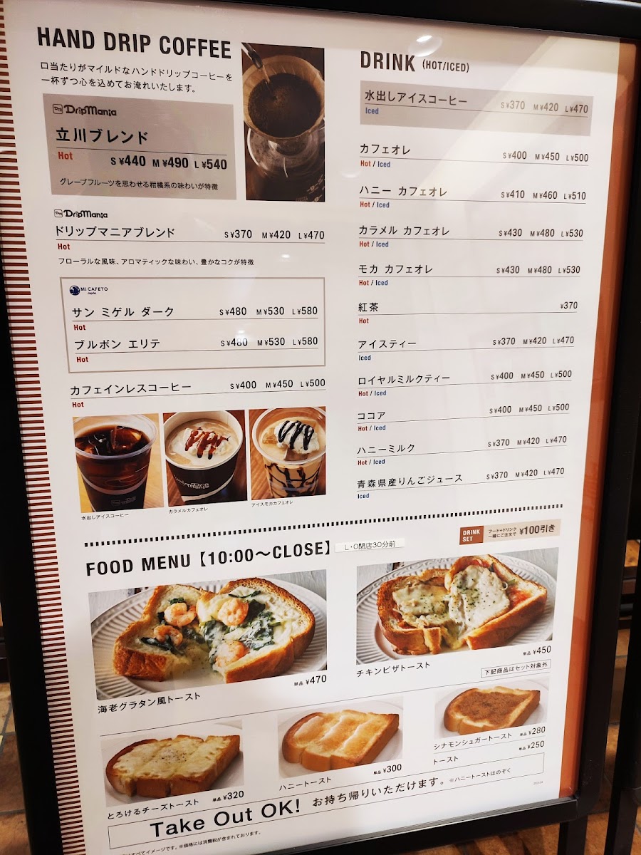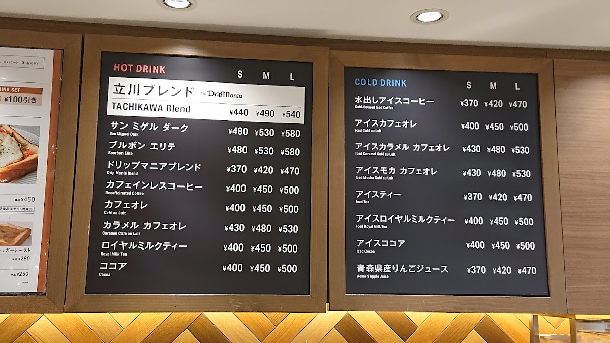 Drip Mania Ecute Tachikawa (Inside Station) Menu